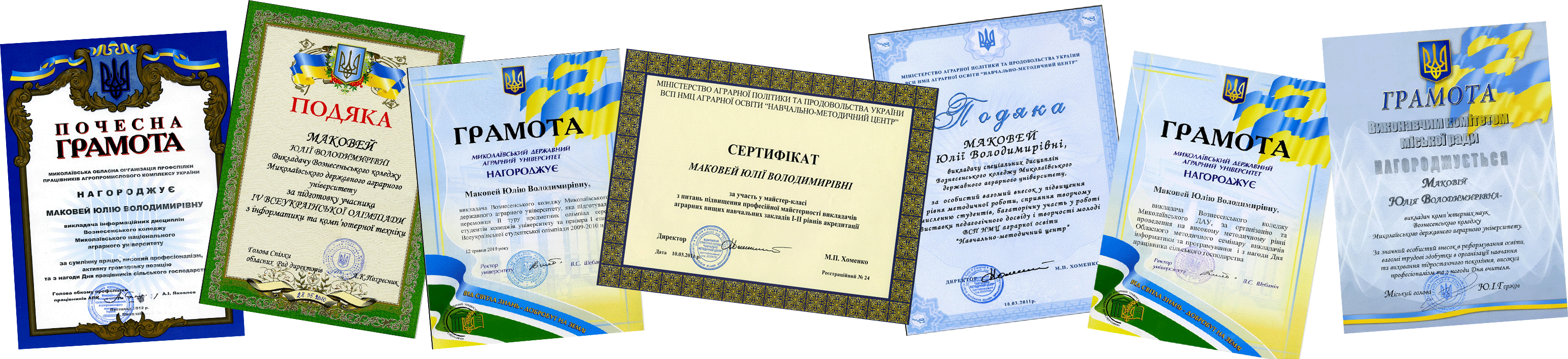 - Грамота профспілкового комітету Вознесенського МНАУ